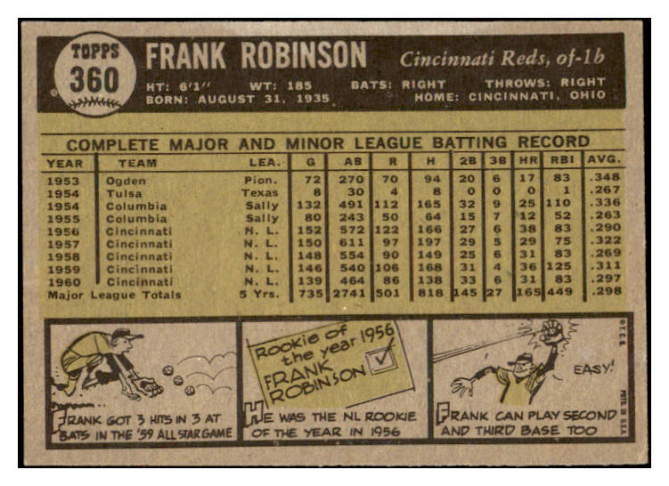 1961 Topps Baseball #360 Frank Robinson Reds NR-MT 528966