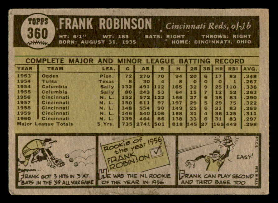 1961 Topps Baseball #360 Frank Robinson Reds VG 540376