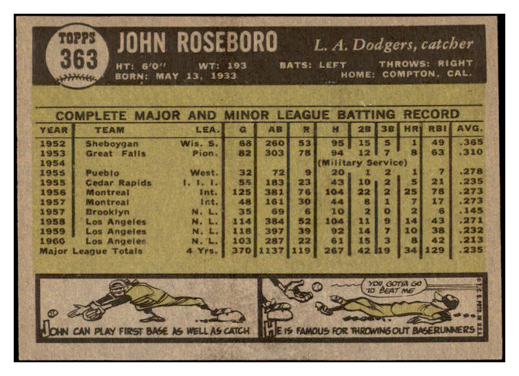 1961 Topps Baseball #363 John Roseboro Dodgers NR-MT 530270