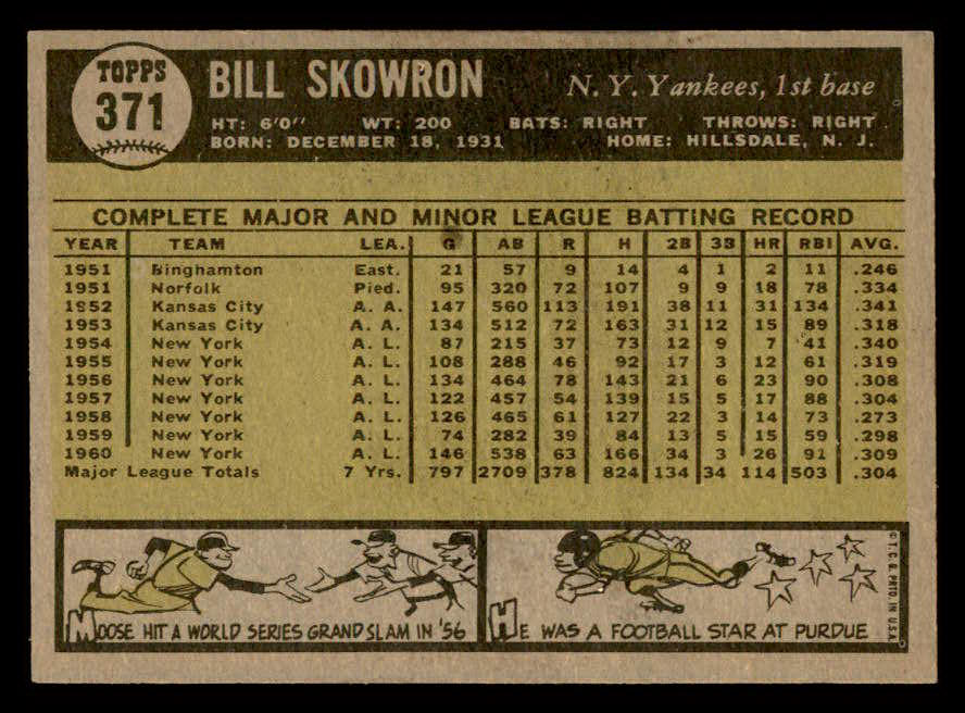 1961 Topps Baseball #371 Bill Skowron Yankees EX-MT 540342