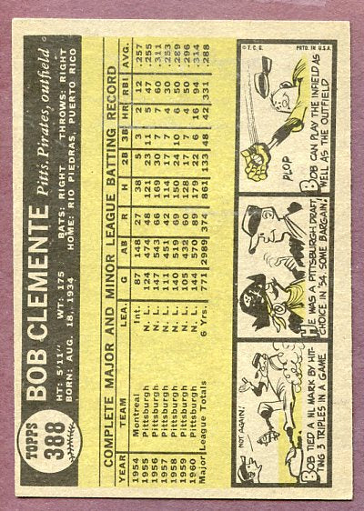1961 Topps Baseball #388 Roberto Clemente Pirates VG-EX/EX 446195