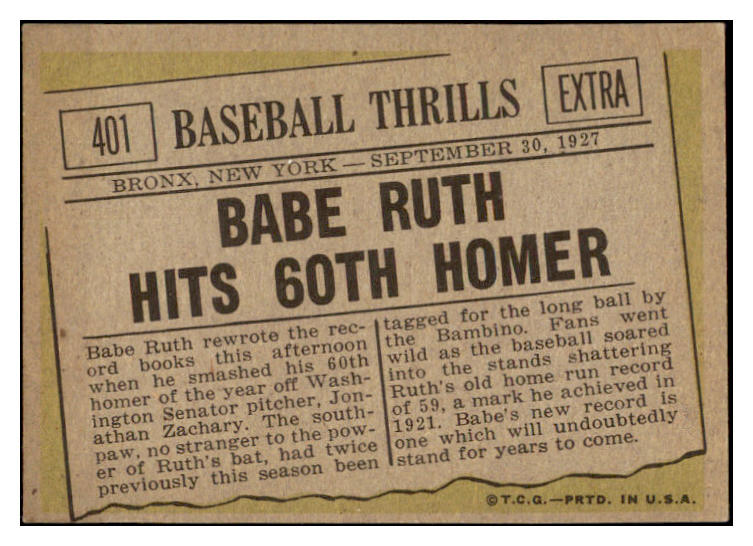 1961 Topps Baseball #401 Babe Ruth Yankees EX-MT 530254