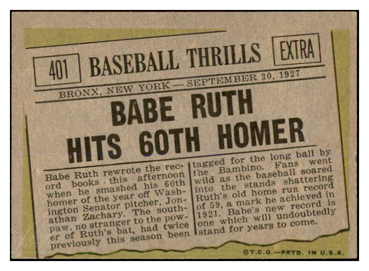 1961 Topps Baseball #401 Babe Ruth Yankees VG-EX 537402
