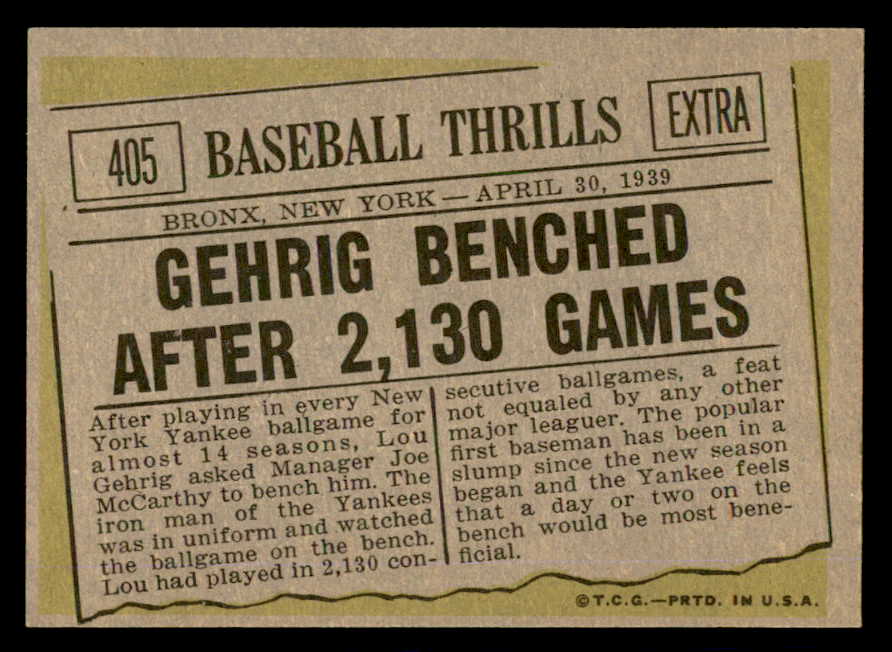1961 Topps Baseball #405 Lou Gehrig Yankees EX-MT 540393