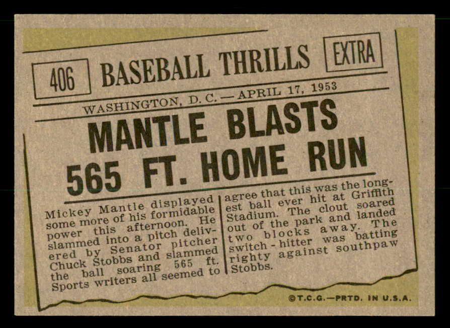 1961 Topps Baseball #406 Mickey Mantle IA Yankees EX-MT 539594