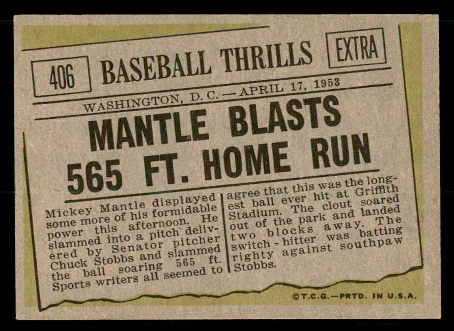 1961 Topps Baseball #406 Mickey Mantle IA Yankees EX-MT 539615
