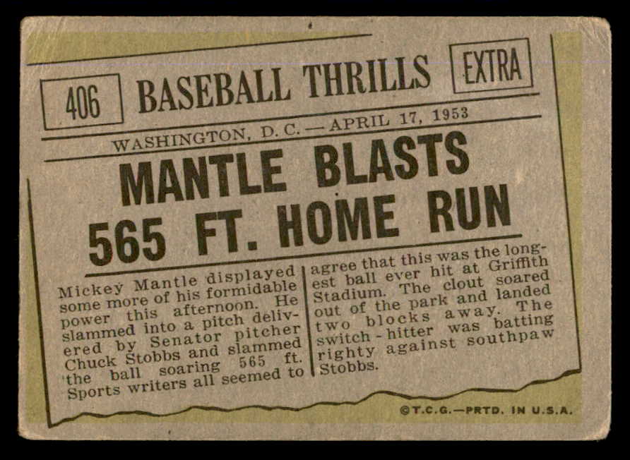 1961 Topps Baseball #406 Mickey Mantle IA Yankees GD-VG 540415