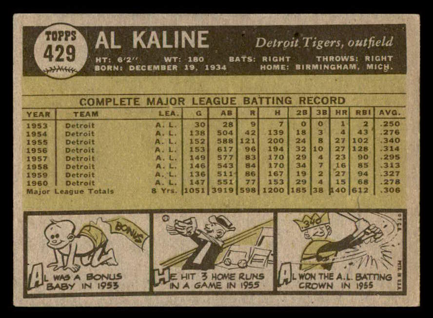 1961 Topps Baseball #429 Al Kaline Tigers EX-MT 539410
