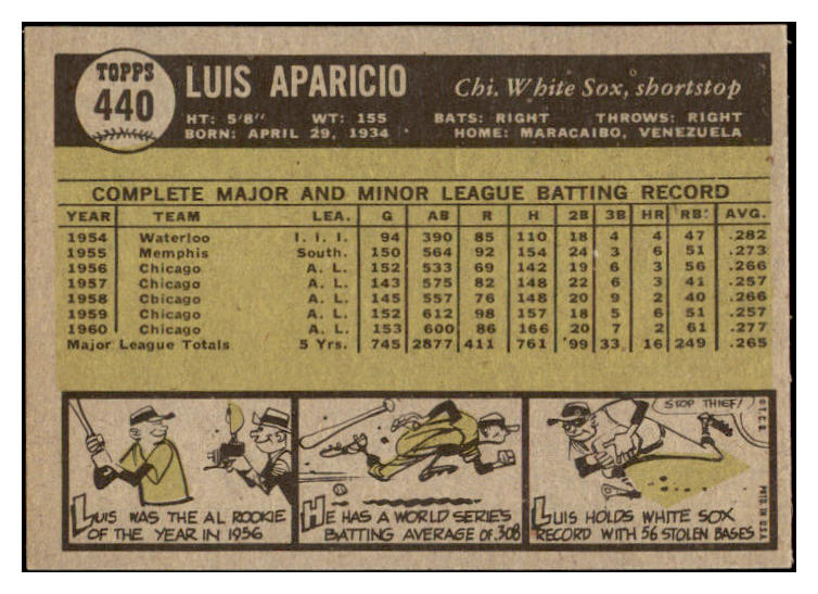 1961 Topps Baseball #440 Luis Aparicio White Sox NR-MT 530265