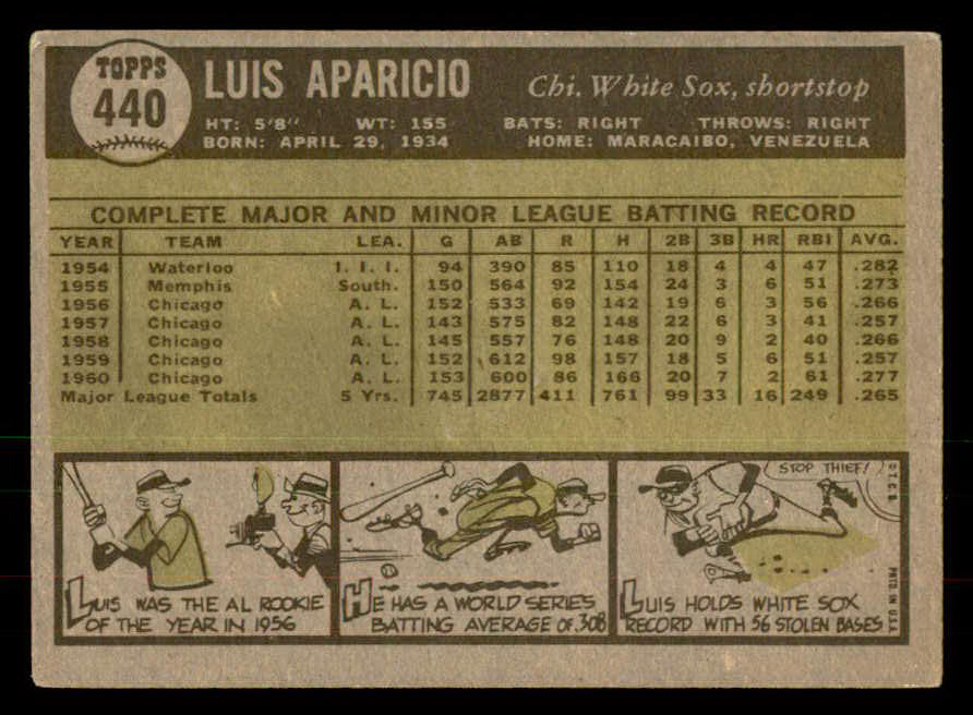 1961 Topps Baseball #440 Luis Aparicio White Sox VG-EX 541295