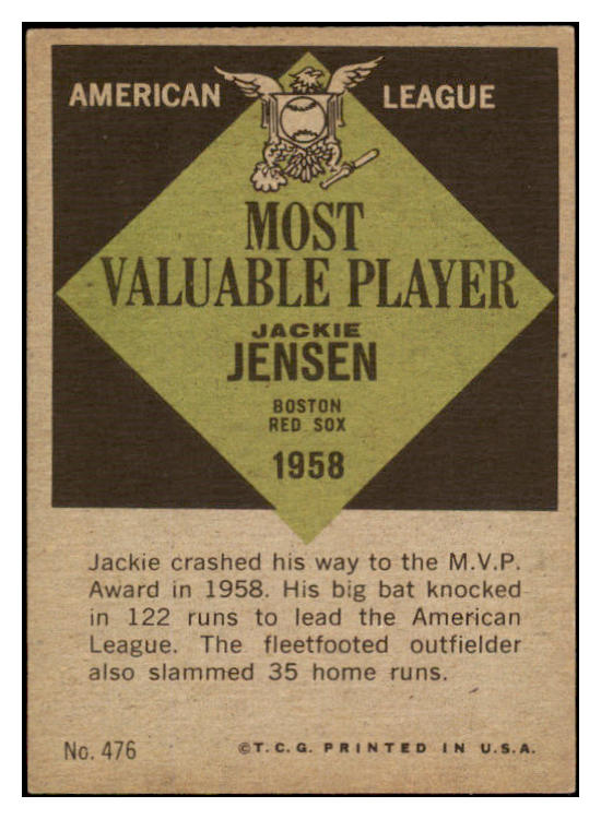 1961 Topps Baseball #476 Jackie Jensen MVP Red Sox NR-MT 525242