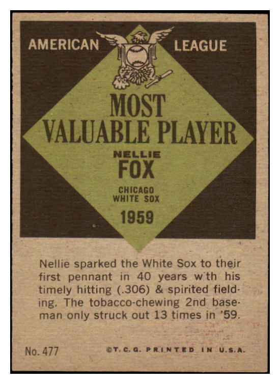 1961 Topps Baseball #477 Nellie Fox MVP White Sox EX-MT 530260