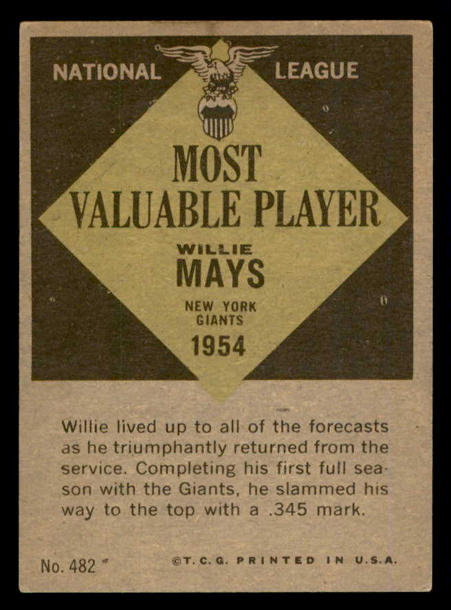 1961 Topps Baseball #482 Willie Mays MVP Giants VG-EX 540402