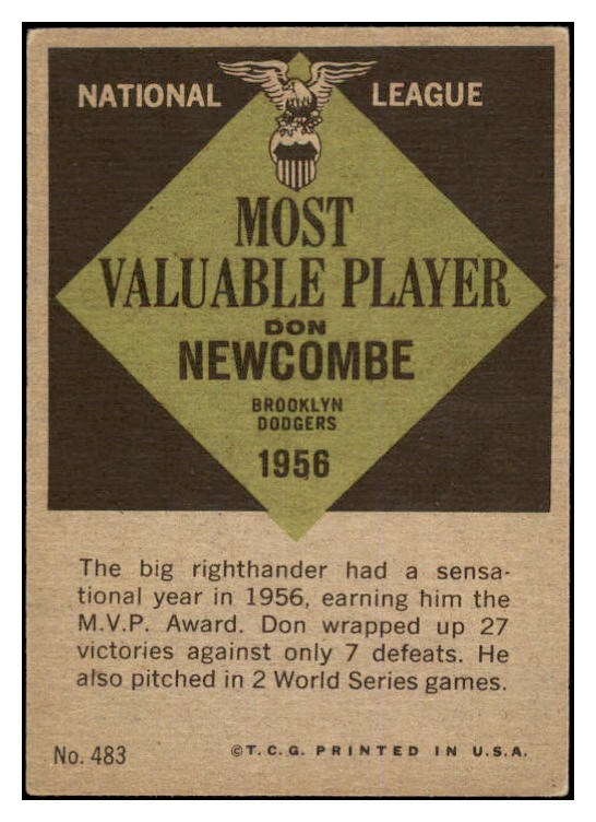 1961 Topps Baseball #483 Don Newcombe MVP Dodgers EX 527746