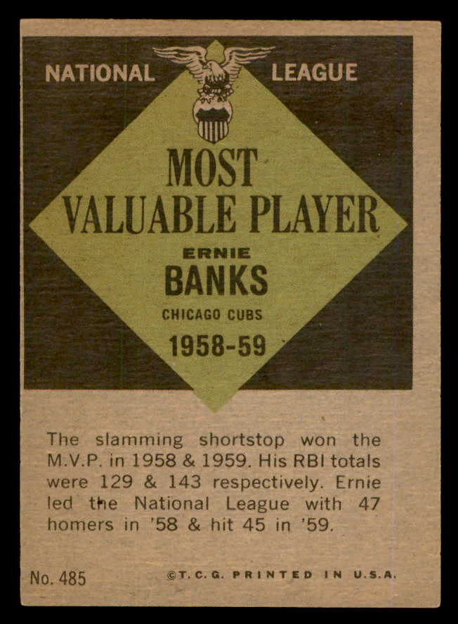 1961 Topps Baseball #485 Ernie Banks MVP Cubs VG-EX 540427