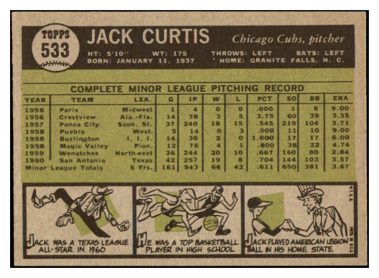 1961 Topps Baseball #533 Jack Curtis Cubs NR-MT 531265