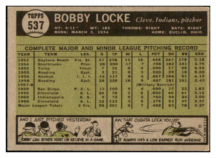 1961 Topps Baseball #537 Bobby Locke Indians NR-MT 531268