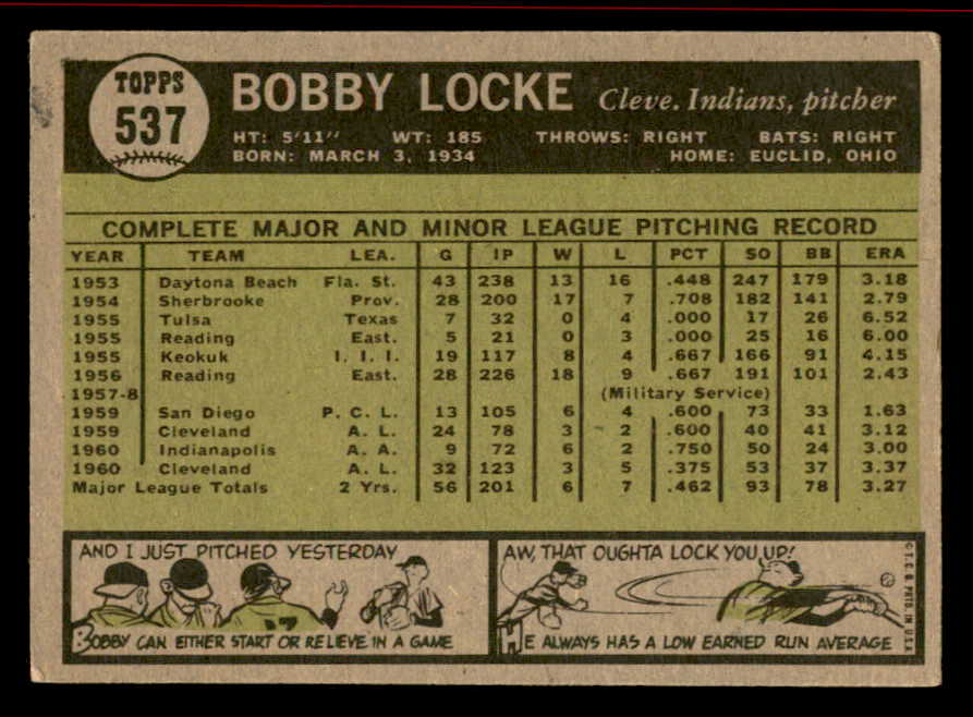 1961 Topps Baseball #537 Bobby Locke Indians VG-EX 542797