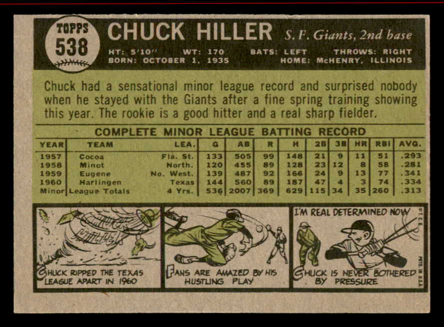 1961 Topps Baseball #538 Chuck Hiller Giants EX+/EX-MT 542637