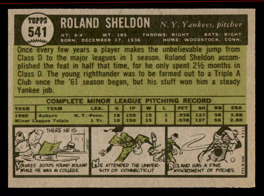 1961 Topps Baseball #541 Roland Sheldon Yankees NR-MT 542625