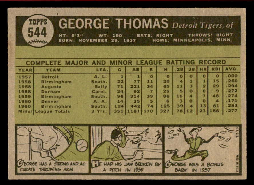 1961 Topps Baseball #544 George Thomas Tigers EX-MT 542628