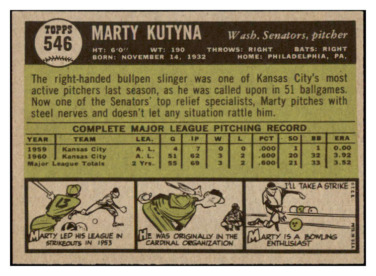 1961 Topps Baseball #546 Marty Kutyna Senators EX-MT 531258