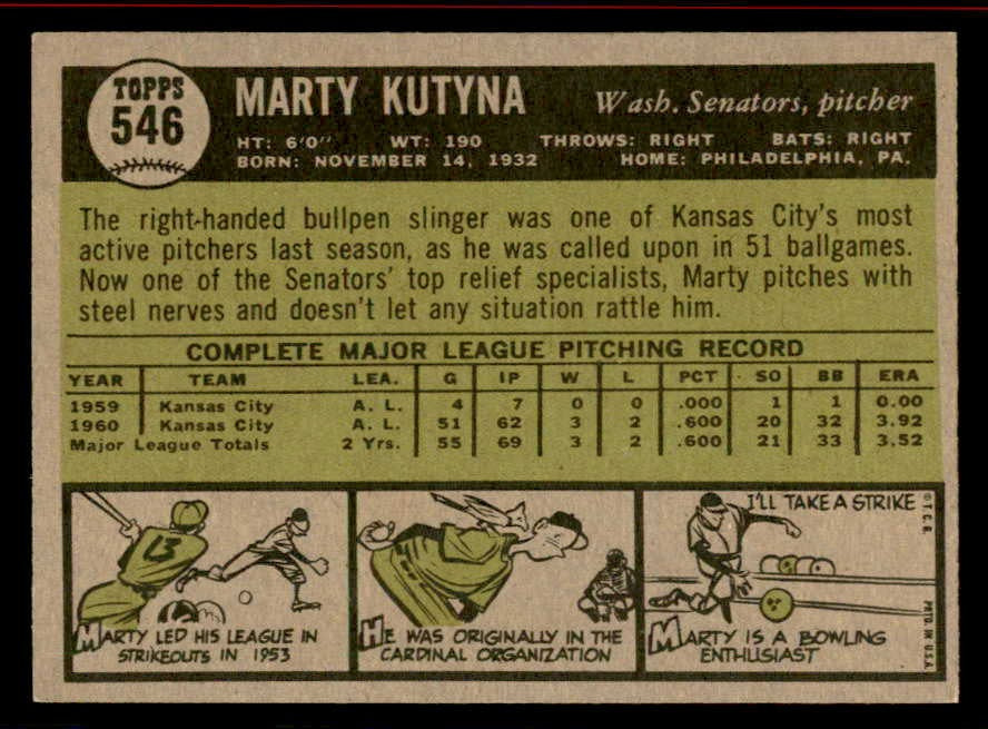 1961 Topps Baseball #546 Marty Kutyna Senators EX-MT 542629