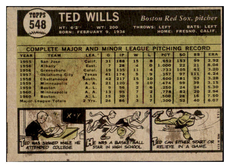 1961 Topps Baseball #548 Ted Wills Red Sox EX+/EX-MT 527831