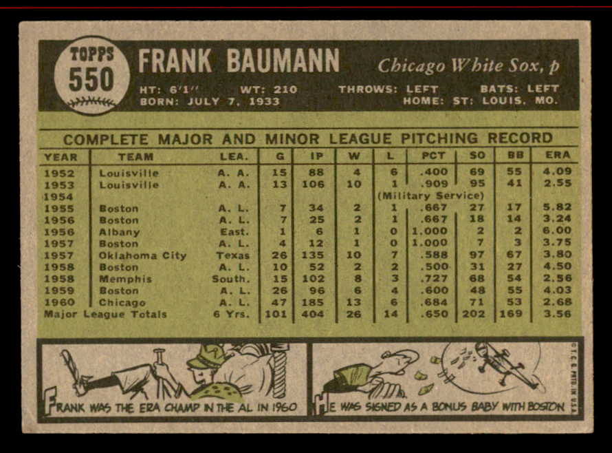 1961 Topps Baseball #550 Frank Baumann White Sox VG-EX 542801