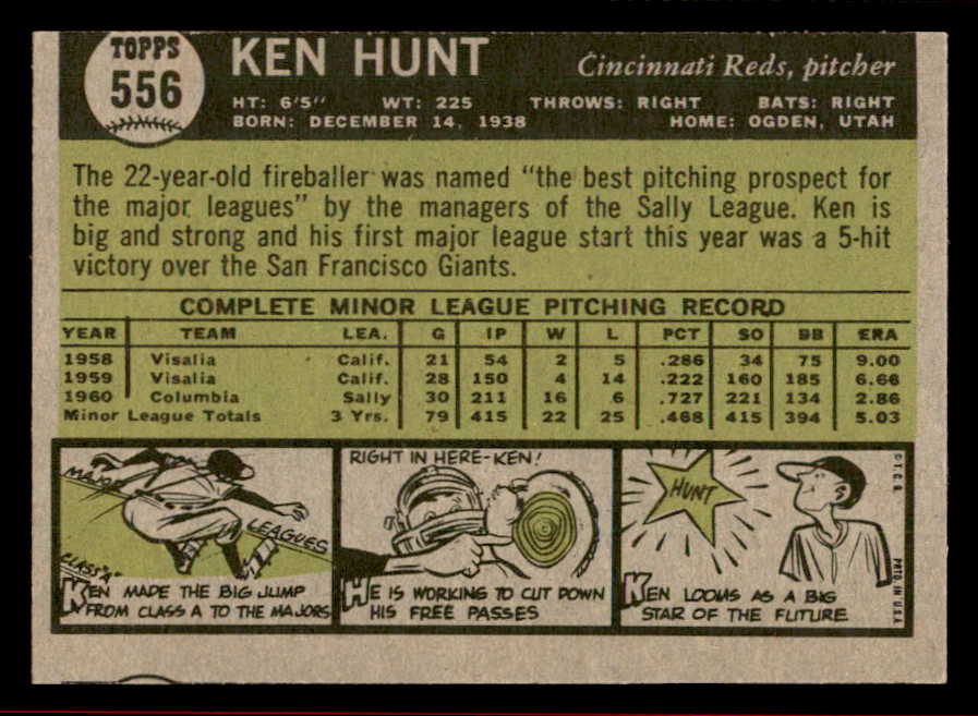 1961 Topps Baseball #556 Ken Hunt Reds VG-EX 542806