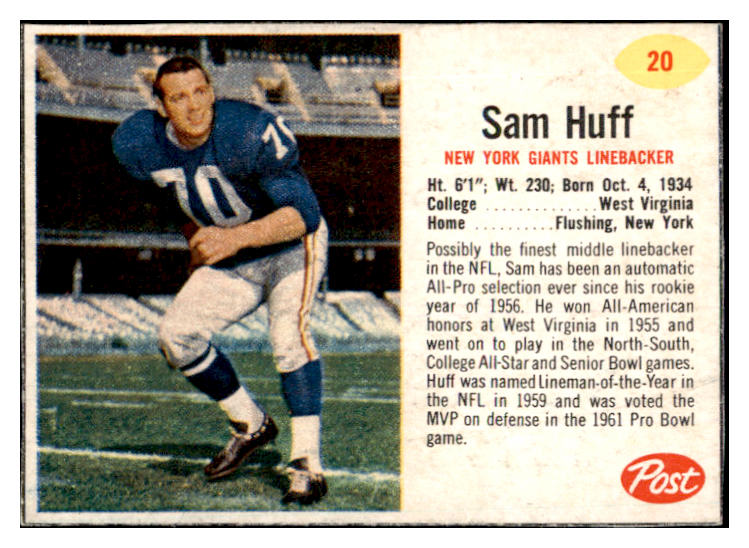 1962 Post Football #020 Sam Huff Giants NR-MT 529345