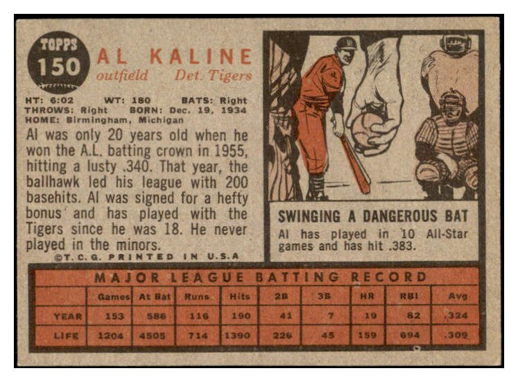 1962 Topps Baseball #150 Al Kaline Tigers EX 522635