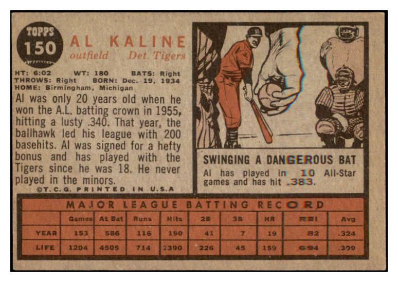 1962 Topps Baseball #150 Al Kaline Tigers EX-MT 527220