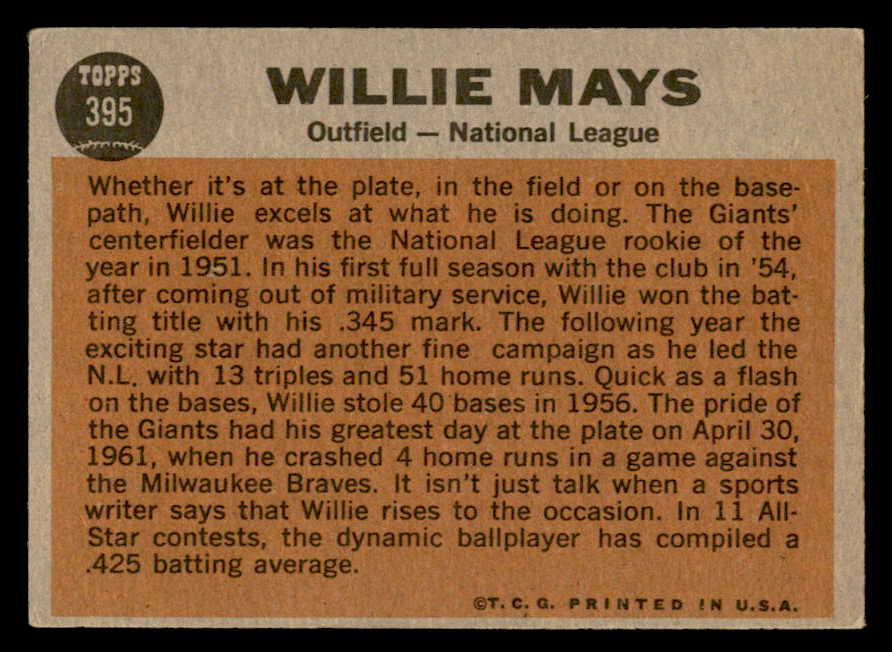 1962 Topps Baseball #395 Willie Mays A.S. Giants EX+/EX-MT 544579