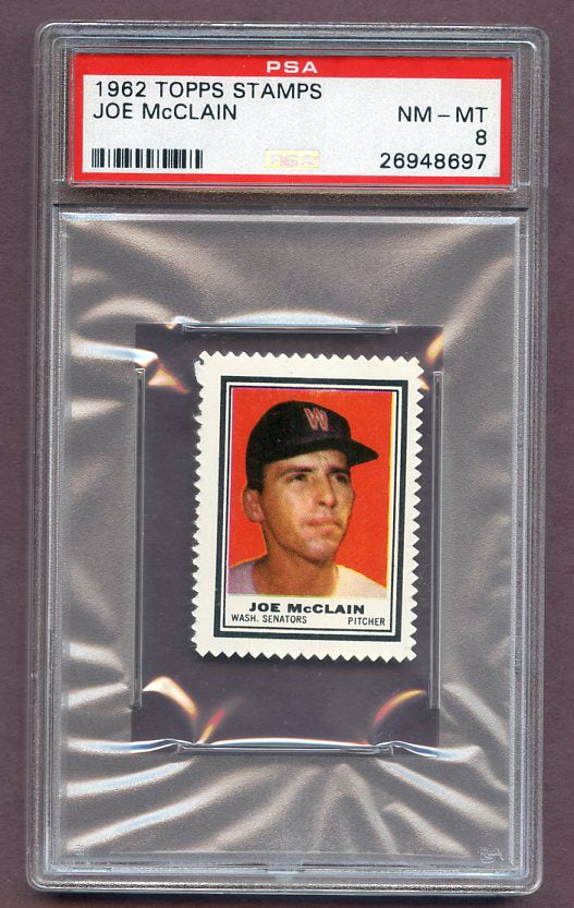 1962 Topps Baseball Stamps Joe McClain Senators PSA 8 NM/MT 483798