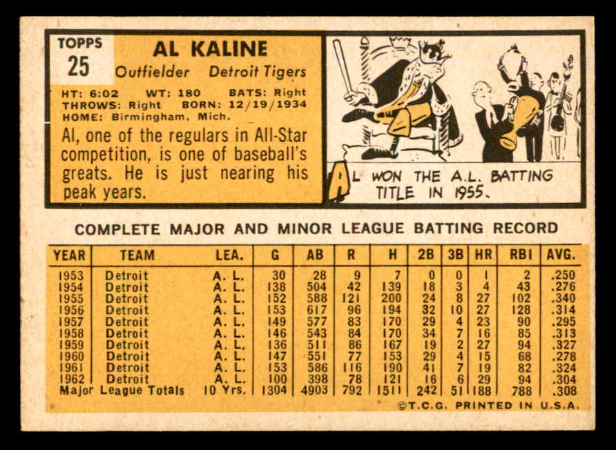 1963 Topps Baseball #025 Al Kaline Tigers EX+/EX-MT 540610