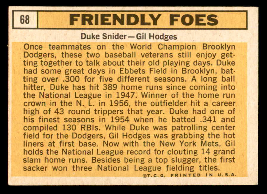 1963 Topps Baseball #068 Duke Snider Gil Hodges EX+/EX-MT 540583