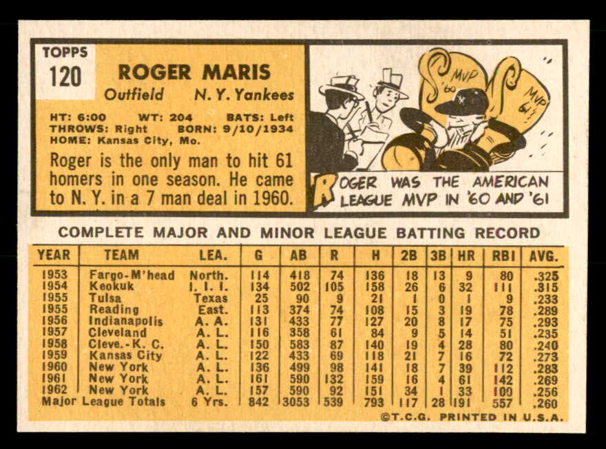 1963 Topps Baseball #120 Roger Maris Yankees EX-MT 539677