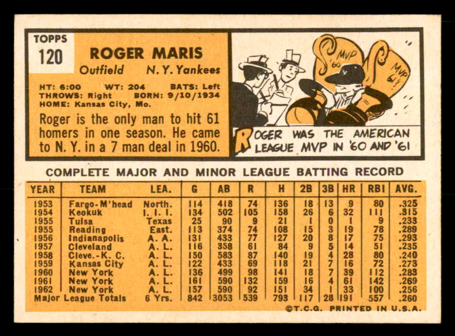 1963 Topps Baseball #120 Roger Maris Yankees EX-MT 539678