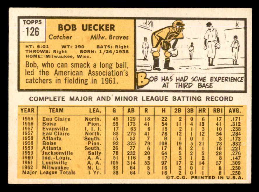 1963 Topps Baseball #126 Bob Uecker Braves EX 540616