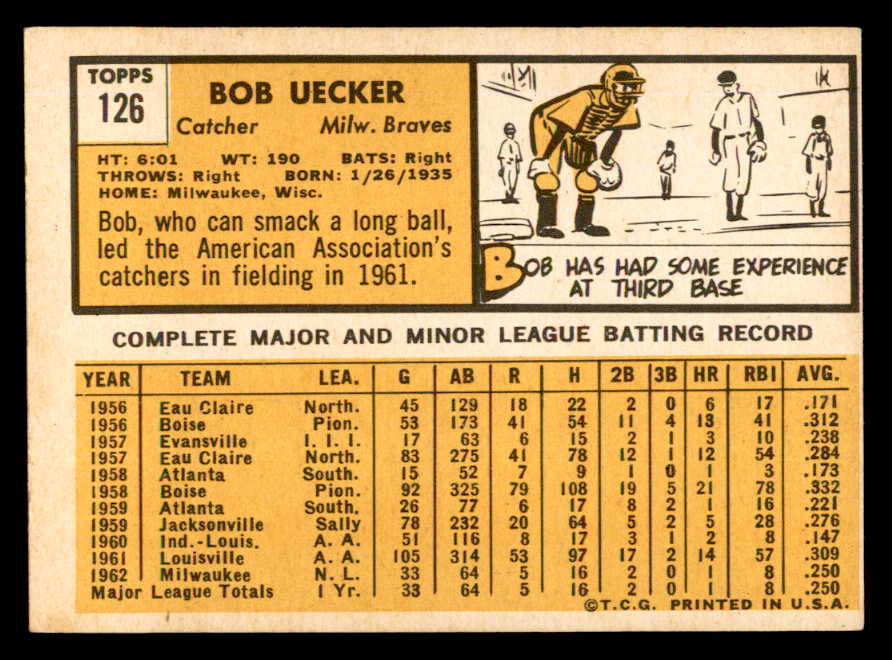 1963 Topps Baseball #126 Bob Uecker Braves EX+/EX-MT 540621