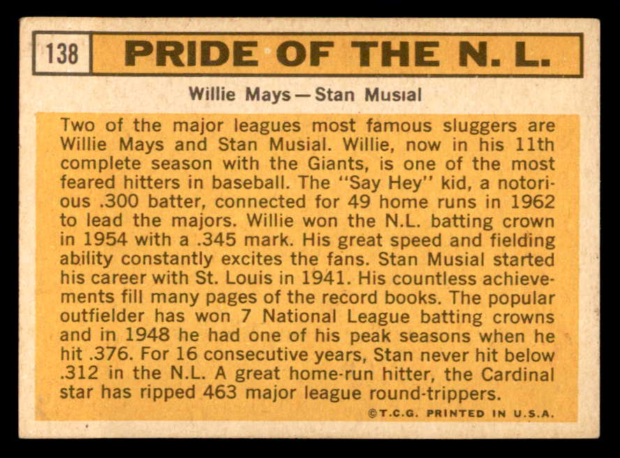 1963 Topps Baseball #138 Willie Mays Stan Musial EX+/EX-MT 540572