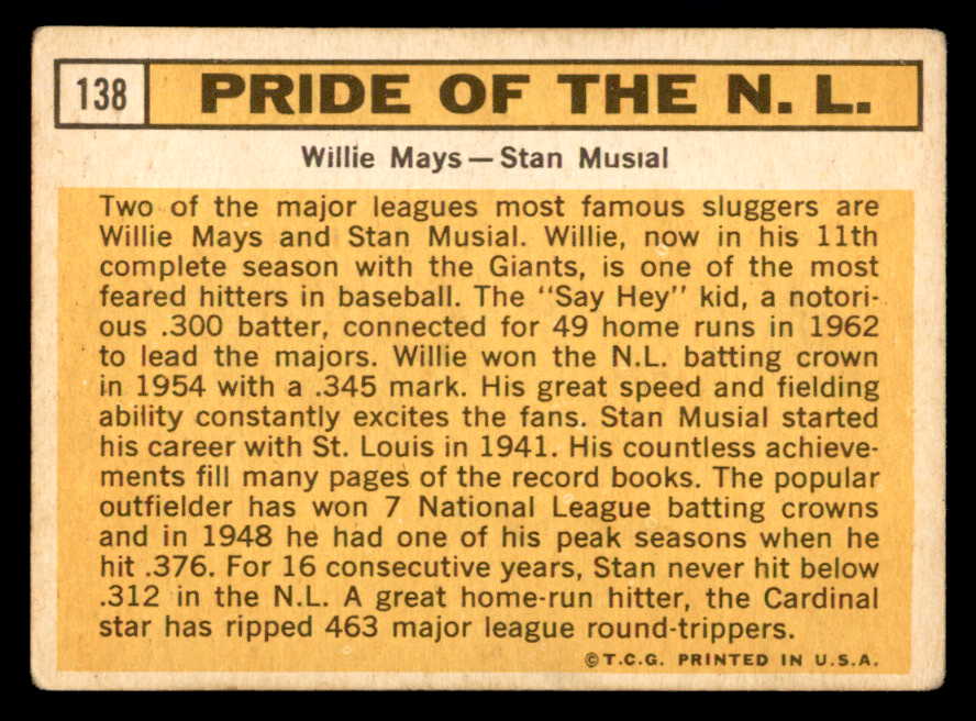 1963 Topps Baseball #138 Willie Mays Stan Musial VG-EX 540568