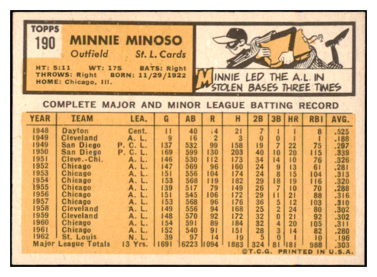 1963 Topps Baseball #190 Minnie Minoso Cardinals EX-MT 531650