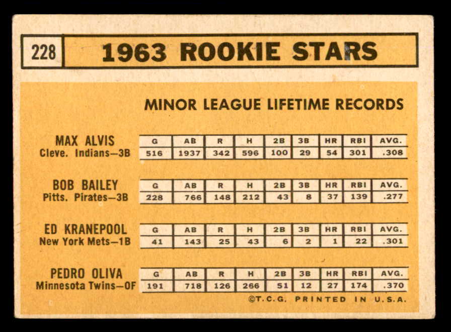 1963 Topps Baseball #228 Tony Oliva Twins VG-EX 540619