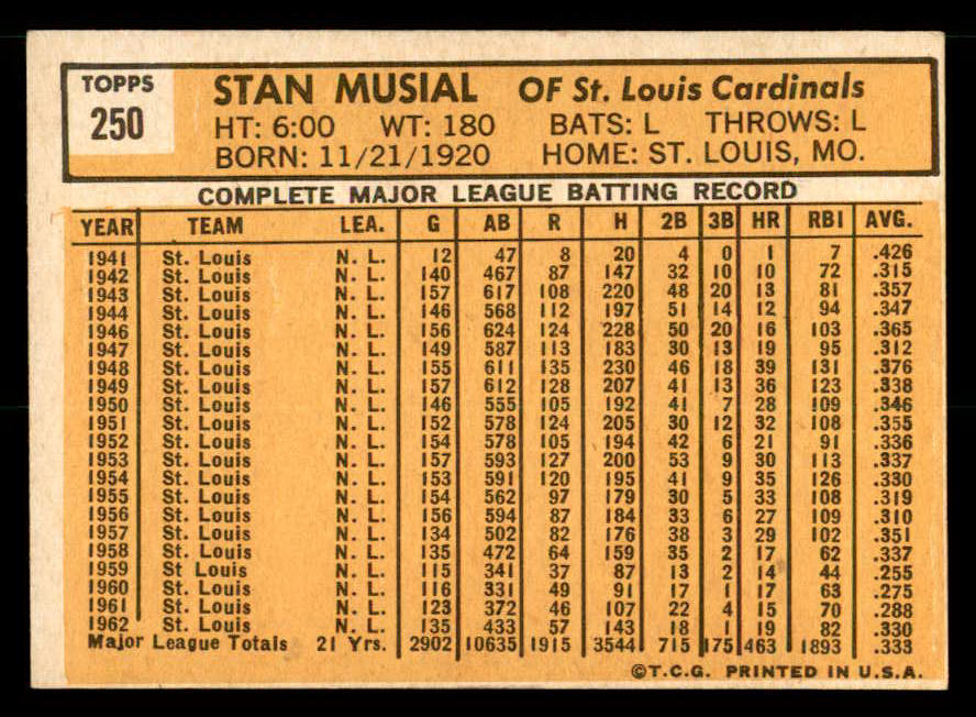 1963 Topps Baseball #250 Stan Musial Cardinals EX-MT 539671