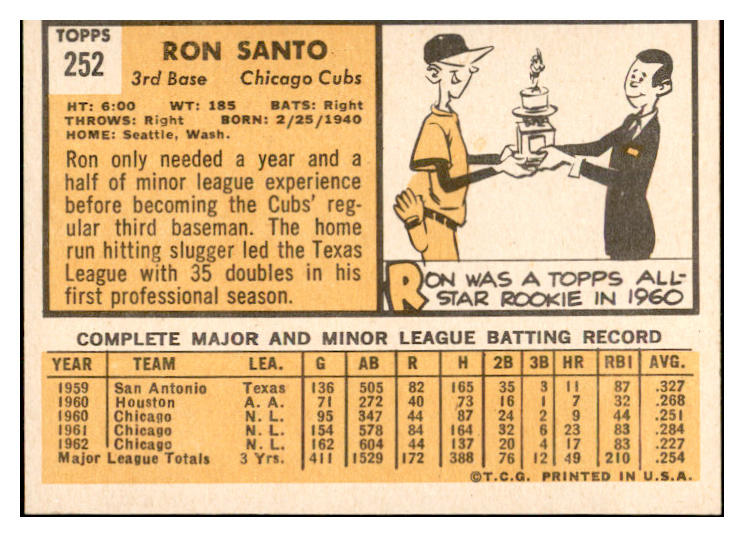 1963 Topps Baseball #252 Ron Santo Cubs EX 534278