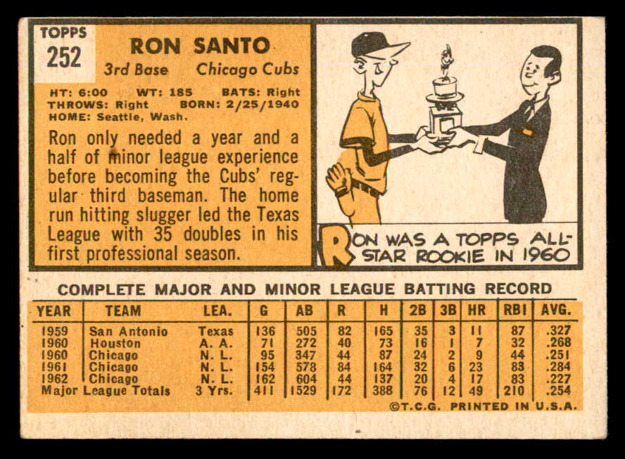 1963 Topps Baseball #252 Ron Santo Cubs EX 540585