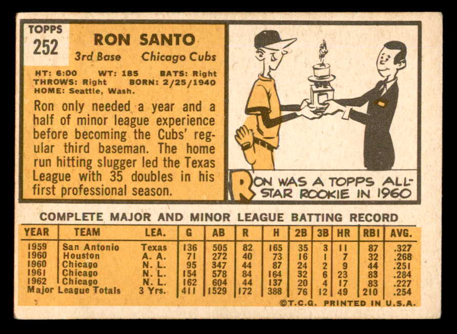 1963 Topps Baseball #252 Ron Santo Cubs EX 540586