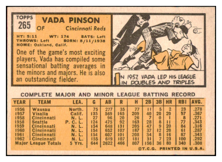 1963 Topps Baseball #265 Vada Pinson Reds NR-MT 531605
